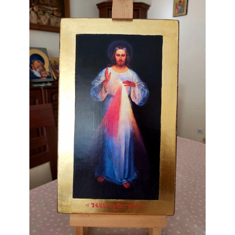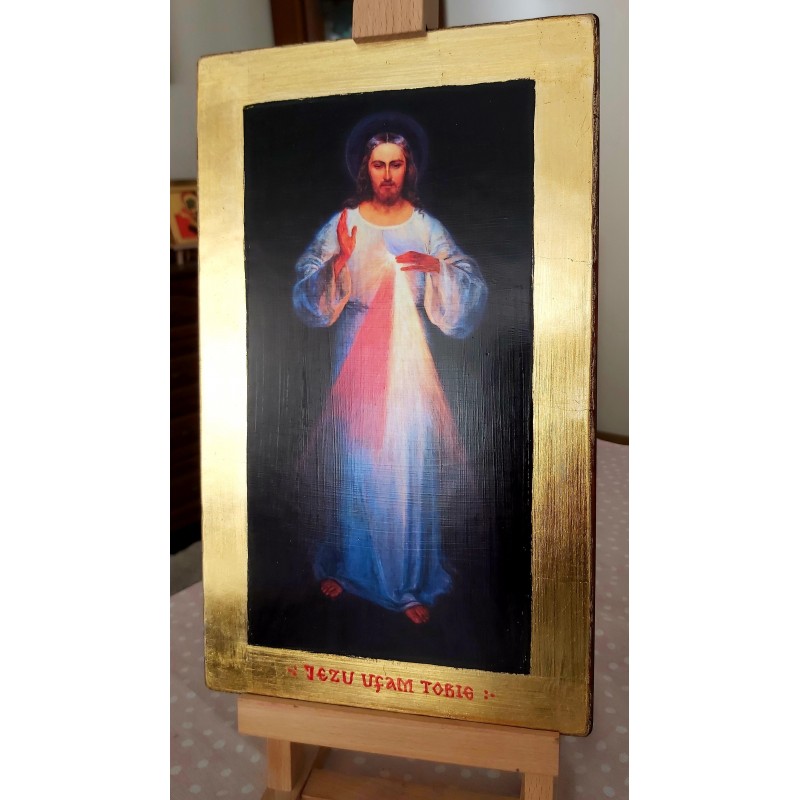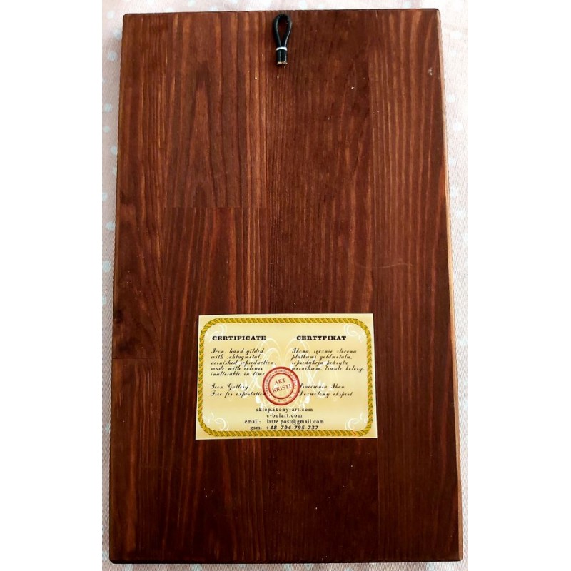 Ikona wykonana przez konserwatora zabytków - artystę plastyka na podobraziu drewnianym - na desce.