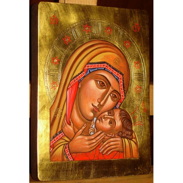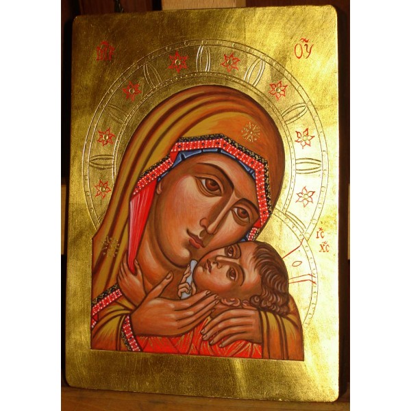 Ikona wykonana wyłącznie tradycyjnymi technikami, złocona złotem.